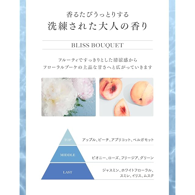 ✨【 洗練された大人の香り ~フルーティ・フローラル~ 】□TOP:アップル・ピーチ・アプリコット・ベルガモット □MIDDLE:ピオニー・ローズ・フリージア・グリーン □LAST:ジャスミン・ホワイトフローラル・スミレ・イリス・ムスク