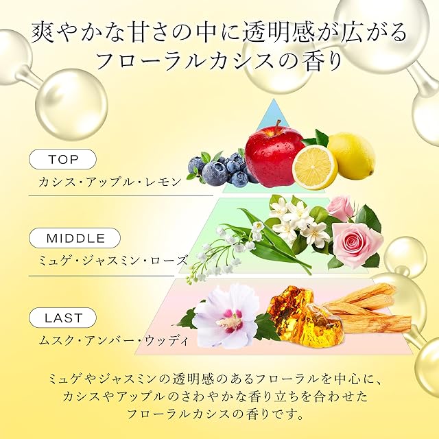 爽やかな甘さの中に透明感が広がるフローラルカシスの香り。