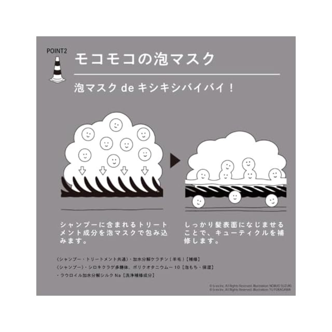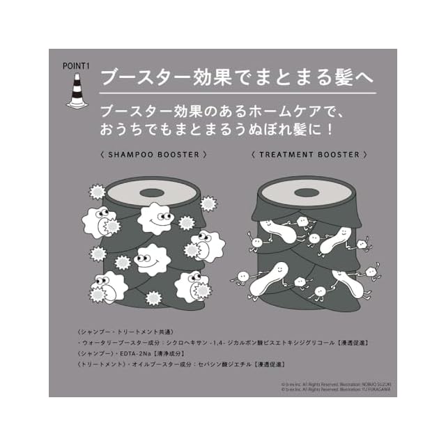 【シャンプー】保湿力と粘性の高いもっちりなめらかな泡質で、洗髪時の髪同士の摩擦を軽減。補修力のある洗浄成分を採用し、さらにトリートメント成分を配合するなどシャンプーにも高い補修機能を持たせています。加えてブースター効果により髪表面をなめらかに整え、トリートメント成分を毛髪内部に高浸透させます。圧倒的な補修力で、ダメージ毛やブリーチ毛で絡まり、きしむ髪も、根元から毛先までおさまりの良い髪へと導きます。