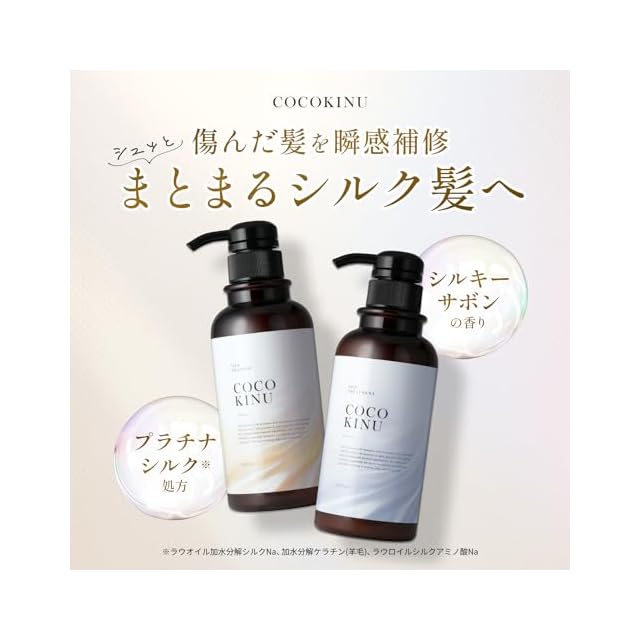 商品名:ココキヌ (COCO KINU) シャンプー トリートメント セット 美容室専売品 サロンシャンプー ダメージ集中補修 (基本ケアセット)