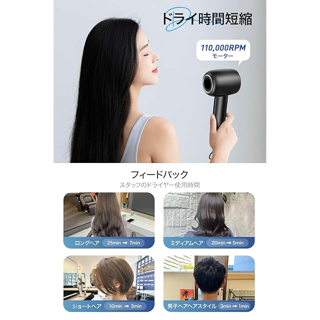 【軽量&コンパクトデザイン・ギフトにも最適】 軽量でコンパクトな一体型デザインは、持ち運びや収納がしやすく、旅行や出張、ジムなどにも便利。シンプルで高級感のある外観は、プレゼントにも最適です。購入日から1年間のメーカー付きで、初期不良にも迅速対応。安心してご使用いただける高品質ドライヤーです。