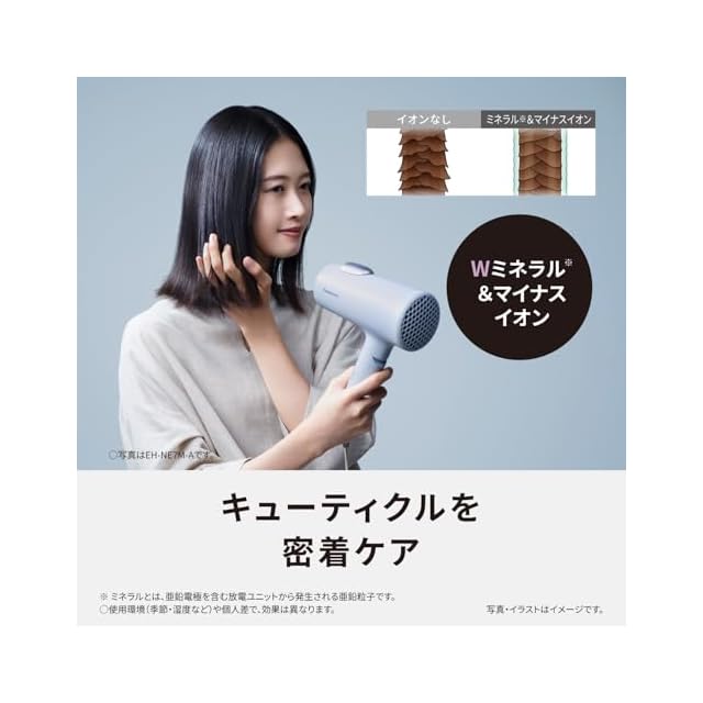 ダブルミネラル・マイナスイオン(※ミネラルとは亜鉛電極を含む放電ユニットから発生される亜鉛粒子です。※)で、キューティクルを密着ケア。