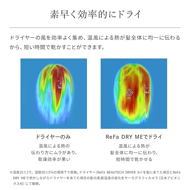 【素早く効率的にドライ】ドライヤーの風を効率よく集め、温風による熱が髪全体に均一に伝わるから、短い時間で乾かすことができます。