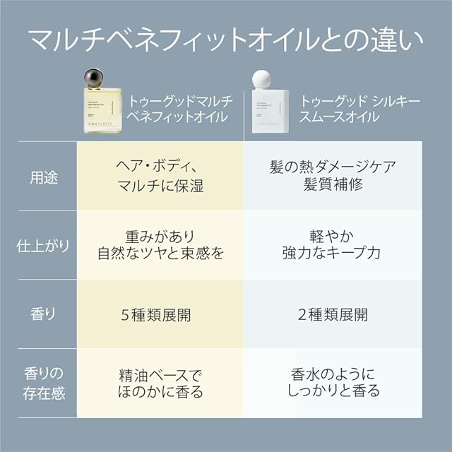 ( 本気のケアも香りも楽しむパフューム ヘアオイル )SHIN PURETE( シンピュルテ )人気NO1のマルチベネフィットオイルに続く「トゥーグッド シルキースムースオイル」誕生。熱の力でキューティクルを補修し、髪一本一本をしなやかでなめらかな質感へと導くヘアオイルです。