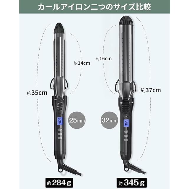 商品名:BAYATA ヘアアイロン カールアイロン コテ 25mm 巻き髪 カーラー 25段階温度調整 MAX220℃ デジタル温度表示 自動電源OFF 海外対応 PSE認証済み 日本語説明書付き