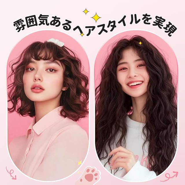 【34mmヘアカールアイロン&一日5分!】 カールヘアアイロンが挟むだけでふわふわウェーブを実現できます。従来型のカールヘアアイロンより操作しやすくなり、優れた技術は必要なし、初心者さんも不器用さんも可愛い波巻きを作れます。忙しい朝でも大活躍!コンパクトで軽いので、仕事後のお色直しにはもちろん、旅行にも持ち運びできます。