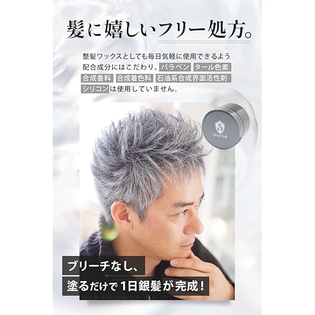 【累計50万個*突破!銀髪ワックスのパイオニア】独自の調合配合により、少量で も自然で品のある『白銀髪』に魅せることに成功。有名人の愛用者も多く、TVドラ マや音楽シーンでも映える『プロ仕様』のシルバーワックスです。*2015年1月〜2024年3月迄シリーズ 全商品販売数量