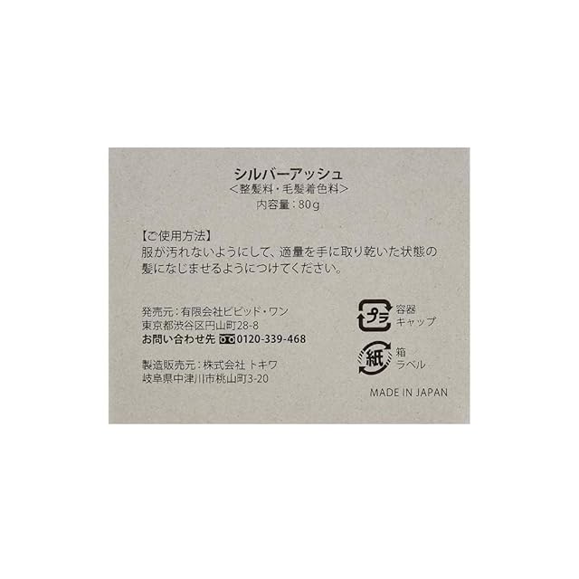 【塗るだけ1分で”シルバーヘア”】ブリーチ不要で誰でも手軽に銀髪を楽しめるシ ルバーアッシュに。日本人の髪のメラニンの割合に着目し、試行錯誤の末に補色効果 と独自の配色調合により、自然で品のある『白銀髪』に魅せるシルバーワックスです。