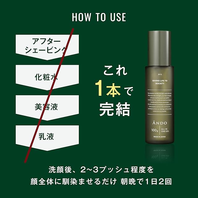 ANDO ALL IN ONE GEL オールインワンゲル グリセリルグルコシドを配合 100g メンズスキンケア 敏感肌向け 髭剃りや脱毛後の肌に これ1本でOK