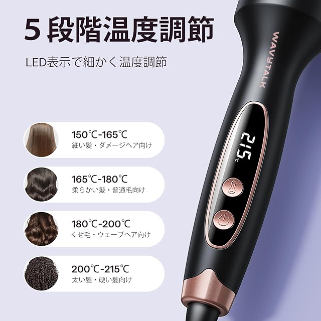 商品名:Wavytalk ロールブラシアイロン 38mm ツヤ髪ブロー仕上げ トルマリンセラミック マイナスイオン搭載サーマルブラシ 低ダメージ 5段階温度調節 (ローズゴールド)