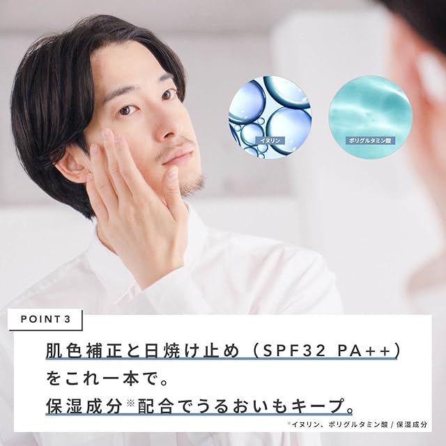 【商品特徴】<br>■スッとなじむテクスチャー。<br>みずみずしく伸ばしやすいクリームタイプ。<br>塗っていることを感じさせない軽い付け心地が特徴です。<br> <br>■自分好みの色選び。<br>・01 ライトベージュ(明るめ)<br>肌をトーンアップしたいあなたに。<br>・02 ナチュラルオークル(自然な色味)<br>クマ・青ヒゲを自然にカバーしたいあなたに。<br> <br>■朝の準備、これ1本。<br>肌色補正と日焼け止め(SPF32 PA++)をこれ1本で。<br>保湿成分配合※で肌のうるおいをキープ。帰宅後は、洗顔で落とせます。<br>※イヌリン、ポリグルタミン酸/保湿成分