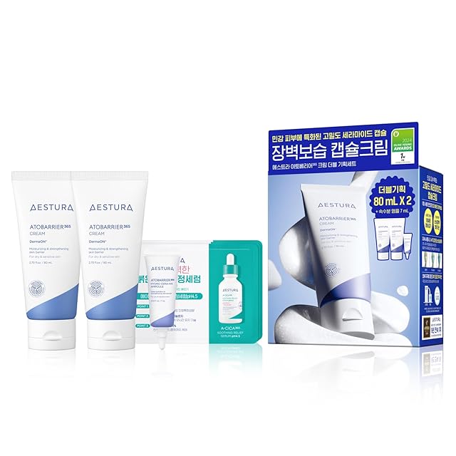 【AESTURA】アトバリア365 クリーム 80mL 1+1 160mL 2個入り 美容液 7mL 1個 1mL 3枚 おまけ付き 敏感肌 韓国コスメ 保湿クリーム スキンケア 乳液 乾燥肌 無香料 無着色 セラミド 低刺激 ダーマコスメ 顔 韓国 べたつかない しっとり メンズ 子供 親子 赤ちゃんも使える ノンコメドジェニック