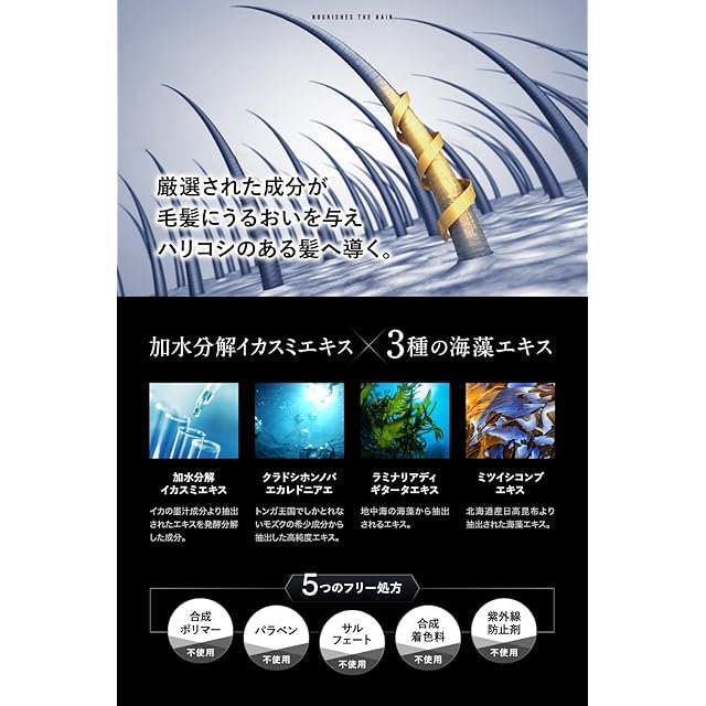 ✅【4種の海洋由来成分]クラドシホンノバエカレドニアエ多糖体(フコイダン)・ラミナリアディギタータエキス・ミツイシコンブエキス・加水分解イカスミエキス 【2種の美髪成分】加水分解ケラチン・加水分解シルクを高配合。