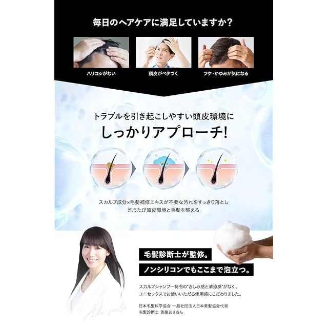 ✅【正しいシャンプー方法】①洗う前に柔らかめのブラシで髪をブラッシングします。 ②ブラッシング後は、38度前後のシャワーで頭皮をマッサージするように2〜3分予洗いします。しっかり予洗いをすると毛穴が開き、頭皮・髪に付着した皮脂や汗・ほこりなどの汚れが落としやすくなります。 ③泡立ちが良いシャンプーなので、ワンプッシュを基準に髪を揉み込みながらしっかり泡立てます。 ④シャンプーが残らないよう念入りに3分ほどしっかり洗い流してください。
