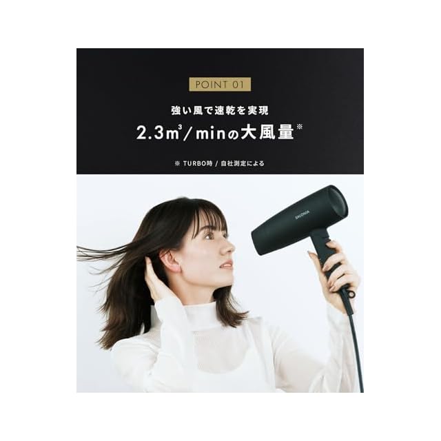 【2.3㎥/minの大風量】ドライ時間30%短縮を実現。面倒なドライ時間を短縮できる大風量ドライヤー