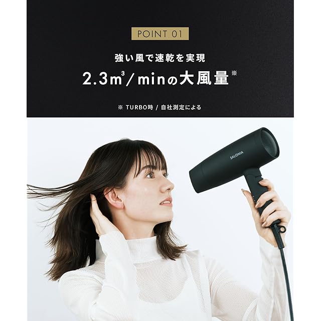 【2.3㎥/minの大風量】ドライ時間30%短縮を実現。面倒なドライ時間を短縮できる大風量ドライヤー