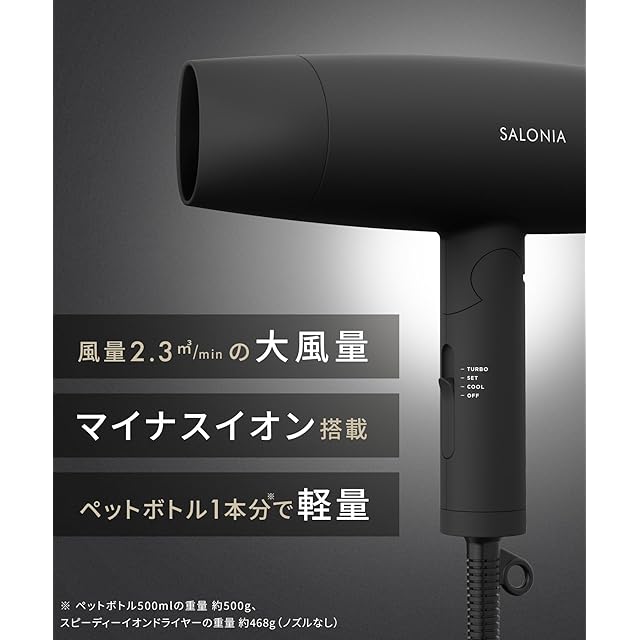 商品名:【2025年秋冬限定カラー】 SALONIA サロニア スピーディーイオン ドライヤー 大風量 速乾 軽量 マイナスイオン ヘアドライヤー SAL24217BL サイレント サックスブルー