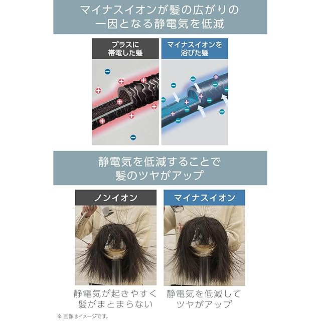 【モイスチャー】マイナスイオンと風を髪全体へ。広範囲に届けます。【ポイント】マイナスイオンと風を集中させる。髪の根元もしっかり乾かせます。※イメージ図