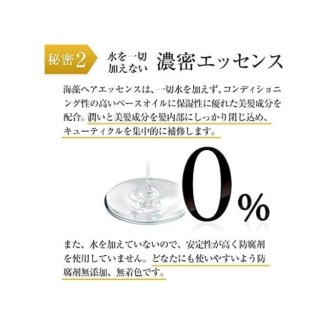 【濃密美髪エッセンス】水を一切加えず、美髪成分のみで構成されたヘアエッセンス。潤いや美髪成分を髪内部にしっかり閉じ込め、キューティクルを集中的に補修します。
