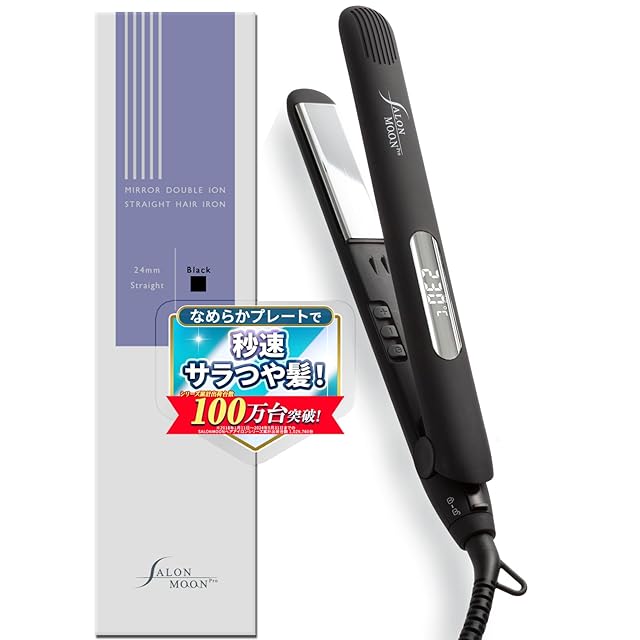 商品名:【 デジタル表示 秒速スタンバイ 】 SALONMOON (サロンムーン) ミラーダブルイオン ストレート ヘアアイロン 24mm ブラック ストレートアイロン 80℃~230℃ カール 2WAY コテ 高濃度マイナスイオン 海外対応