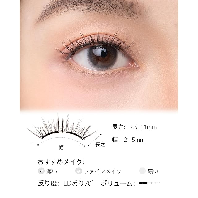 良質な動物実験フリー素材:動物実験フリー、清潔で、軽く、独特で快適。厳選した動物実験フリー素材による快適さ、柔らかい装着感を目に与えます。たっだ0.034gのつけまつげは、羽のようにふんわりで、目に呼吸感を与え、最高な快適さを手に入れます。(Tips:目はデリケートなので、つけまつげをつけたら、慣れるまで一定の時間が必要です)
