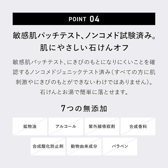 【ご使用上の注意】◯お肌に異常が生じていないかよく注意してご使用ください。お肌に合わない時はご使用をおやめください。〇傷、はれもの、湿疹等、異常のある時はご使用をおやめください。〇ご使用中、赤み、はれ、かゆみ、刺激、色抜け(白斑等)や黒ずみ等の異常があらわれた場合やご使用した肌に直射日光があたって上記のような異常があらわれた場合は、ご使用を中止してください。そのままご使用を続けますと、症状を悪化させることがありますので、皮膚科専門医等にご相談されることをおすすめします。〇目に入った時はすぐに洗い流してください。〇日焼け止め効果を保つために2〜3時間ごとにつけかえてください。〈保管及び取扱上の注意〉〇使用後は必ずキャップをつけて保管してください。〇乳幼児の手の届かない所に保管してください。〇直射日光の当たる場所や極端に高温または低温の場所には保管しないでください。〇パールの流れが模様のように表面に浮き出ることがありますが品質上問題はありません。