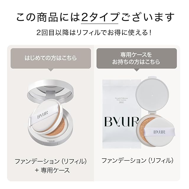 商品名:ByUR バイユア クッションファンデ グロークッション シルキーヌードクッション 【公式・正規品】 (グロー #23 サンド, リフィル)