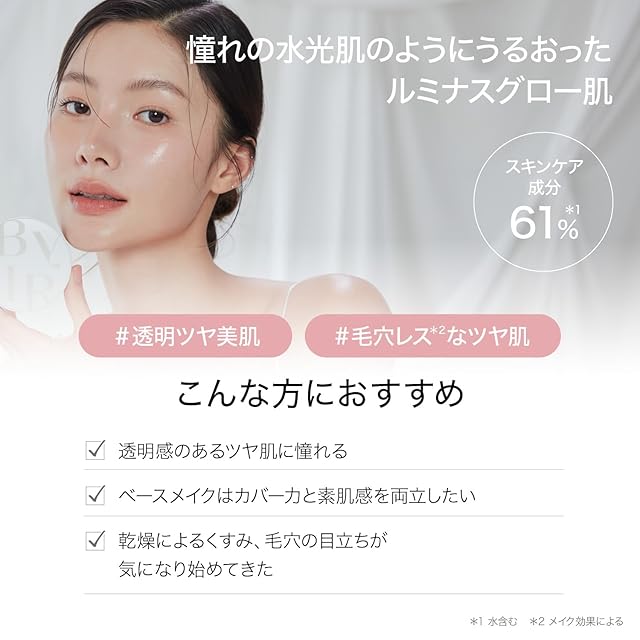 スキンケア成分62%でありながら高密着。くずれにくく自然なツヤが持続 仕上がりの表面は高密着のフィルム状になってうるおいを閉じ込め、色移りを防いでさらりとした感触に。内側では皮脂吸着パウダーが過剰な皮脂だけを吸収します。 テカリを防ぎ、うるおいあふれる自然なツヤと立体感のある仕上がりが持続。 ※立体感:メイク効果による ※ 62%:水含む