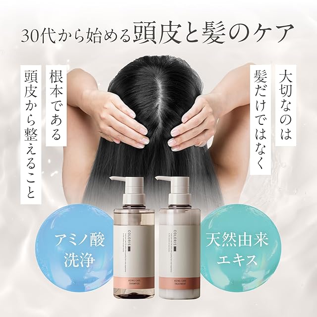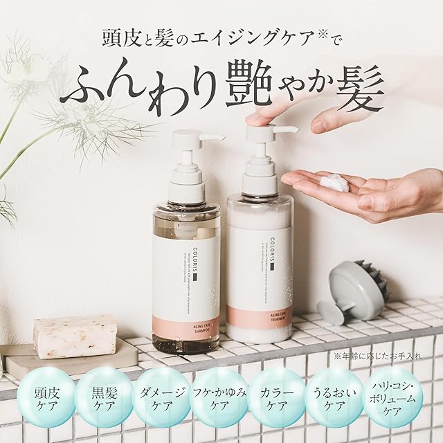 【美容室専売品シャンプー トリートメント セット】このシャンプートリートメントセットは、 カラリス(COLORIS)が、頭皮ケア(スカルプシャンプー)で頭皮を保湿しながら髪のダメージ補修(エイジングケア)をするために開発した美容室専売品のシャンプートリートメンメントセットです。このシャンプートリートメントセットに採用されているシャンプーは主にアミノ酸系の洗浄成分を採用し、髪と頭皮を保湿しいたわりながら洗い上げるシャンプーです。 【アミノ酸洗浄で髪と頭皮を保湿】 保湿・補修成分を含んだアミノ酸系の洗浄成分が配合されており、白髪と乾燥が気になるエイジング毛にアプローチします。このシャンプーは、ノンシリコン、ノンサルフェート処方で、髪を健やかに保つサポートをします。 【ダメージ補修でツヤのある仕上がり】 エイジング成分と保湿成分がキューティクルを保護し、頭皮を保湿して健やかな状態にすることで、乾燥やフケを対策するシャンプートリートメントセットです。このシャンプーを毎日のトリートメントとセットでご使用いただくことで、輝くような髪をサポートします。