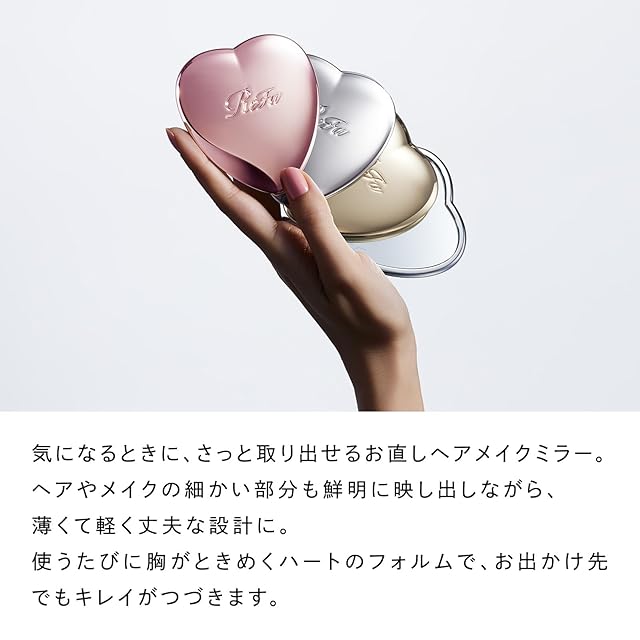 【ハートミラー】いつでも、どこでもさっとお直し。ハートがきらめく、ヘアメイクミラー:気になるときに、さっと取り出せるお直しヘアメイクミラー。ヘアやメイクの細かい部分も鮮明に映し出しながら、薄くて軽く丈夫な設計に。使うたびに胸がときめくハートのフォルムで、お出かけ先でもキレイが続きます。