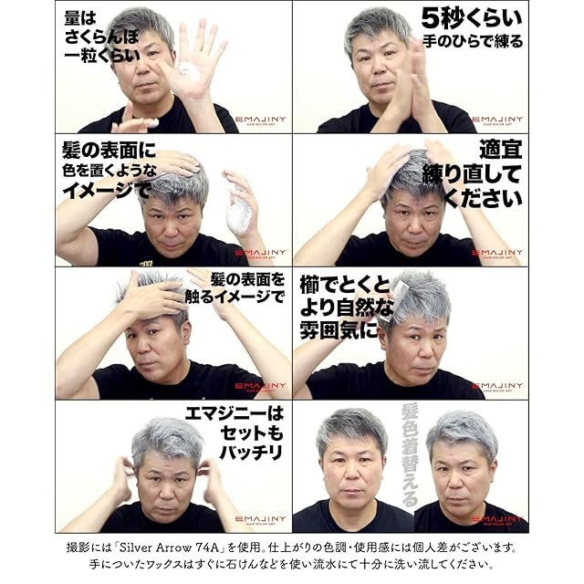 商品名:エマジニー シルバー アロー ヘア カラーワックス 銀 36g 【日本製】 【無香料】 【シャンプーでサッと洗い流せる1日銀髪】 白髪かくし 白髪ぼかし 白髪ケア EMAJINY Silver Arrow 74A (シルバーアロー, お得な3個セット)