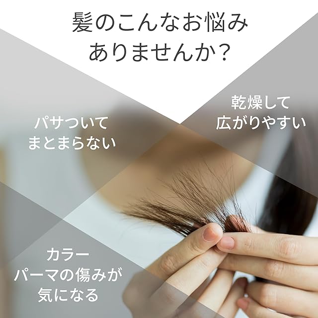 【使用方法】Step1.洗髪後、タオルで軽くおさえるようにして、余分な水分を拭き取ります。Step2.手のひらにヘアエッセンスを適量取り、毛先を中心につけた後、髪全体になじませます。Step3.根元から毛先に向かってドライヤーで乾かします。最後に冷風で仕上げるとツヤ感がアップします。