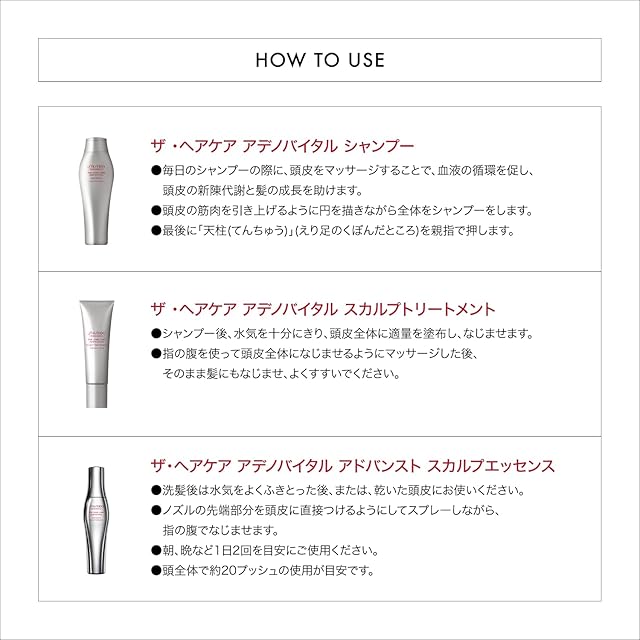 資生堂プロフェッショナルの「アデノバイタル スカルプトリートメント」は、乾燥している頭皮をうるおいで満たすことで、スカルプエッセンスがなじみやすい状態に整えます。 髪にハリ・コシを与え、根元からボリューム感のある髪に導きます。