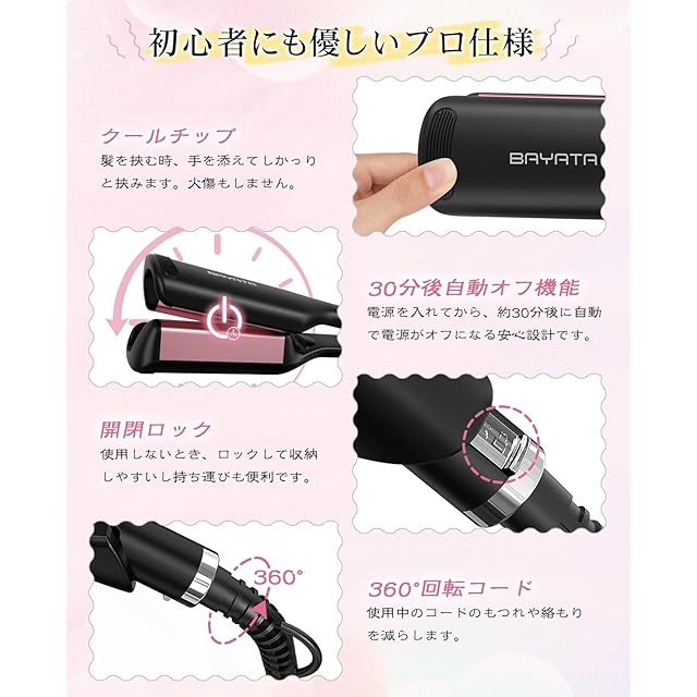 商品名:BAYATA コテ 32mm ヘアアイロン ウェーブアイロン ワッフルアイロン【初心者向け・挟むだけで巻き髪作る・千万級マイナスイオン吹出】カールアイロン ウェーブ巻き 100℃~210℃温度調節 全髪質対応 韓国風ヘアスタイル やけど防止 海外対応 PSE認証済 日本語取扱説明書付き