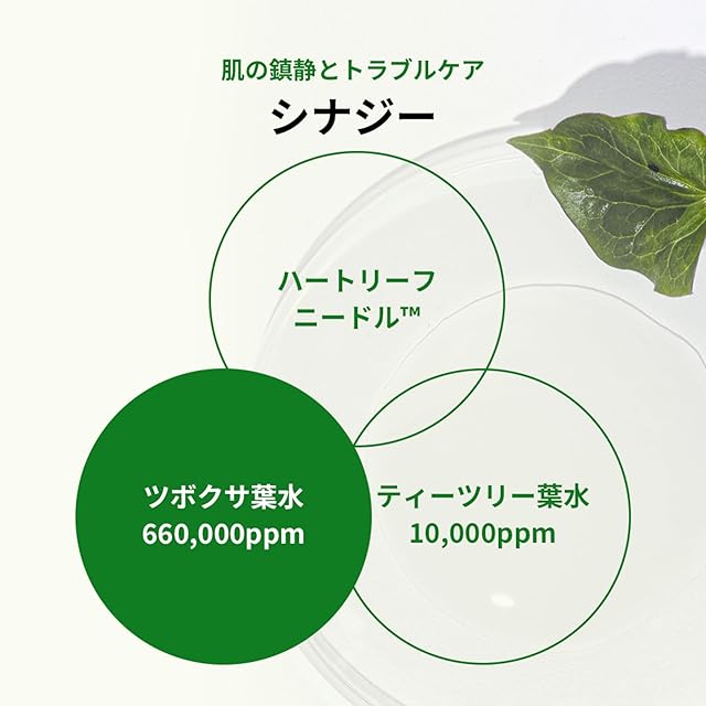 極細粒子のHeartleaf Needleが肌に繊細に浸透し、皮脂や毛穴をやさしくケア。ドクダミ、ツボクサ水、ティーツリー葉水などの有効成分が潤いを与え、毛穴悩みや皮脂バランスを整えます。低刺激テスト済で初心者にも安心。洗顔後すぐに使用することで後続スキンケアの浸透力もアップ。