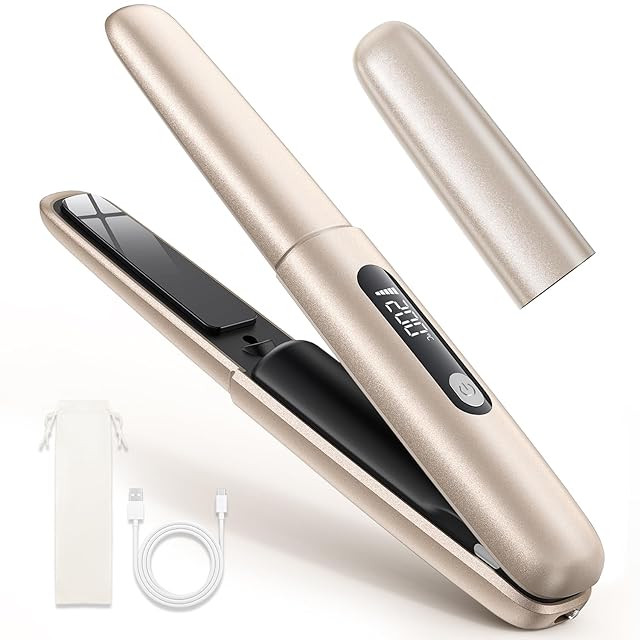 このストレートヘアアイロンは高品質リチウムイオン電池を内蔵し、連続使用可能です。「180℃ー30分、200℃ー20分、実際の使用時間は室温や使用状況によって異なります。」持ち運びに便利なコードレスタイプ、USB充電式でコンセント不要、学校や会社などでの急なヘアセットもOK。旅行や出張などに1つあると便利!バッグ収まるサイズ感だから常に持ち運びができる便利なアイテムです。