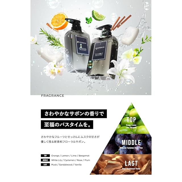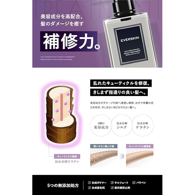 ✅【まるで香水のようなスカルプシャンプー&トリートメント】1日中いい匂いが続くフレグランスシャンプー&トリートメント。 みずみずしいフルーツとせっけんの香りに、ムスクの甘さが優しく残る爽やかな香りです。 EVERSKIN新香料「フローラルサボン」の香りをお楽しみください。 ✅【内容量】スカルプシャンプー:300ml トリートメント:300ml