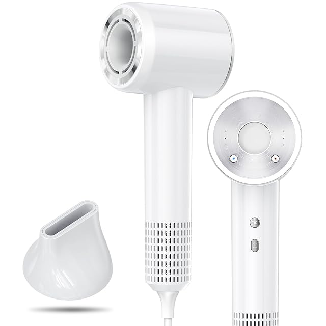 【2025トップモデル・超軽量 大風量】 ドライヤー 速乾 3億マイナスイオン 美髪ケア 1400W 高速 スマート温調 4段階温度&3段階風量 過熱防止 携帯用ドライヤー コンパクト 磁吸ノズル付き ヘアドライヤー サロン級 美容師監修 家庭用/旅行用 (ホワイト)