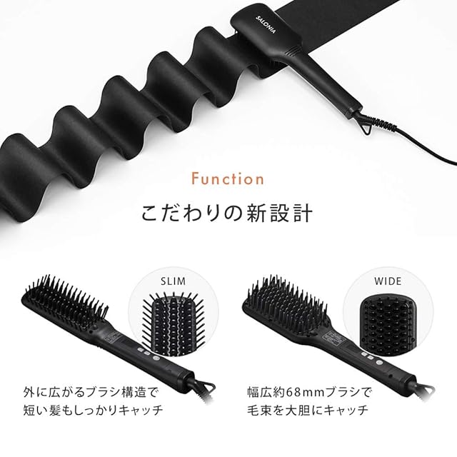 商品名:SALONIA サロニア | [ヒートブラシ] 【スリム・ネイビー】 ヘアアイロン ストレート マイナスイオン 前髪 カール 外ハネ SL-012NVS