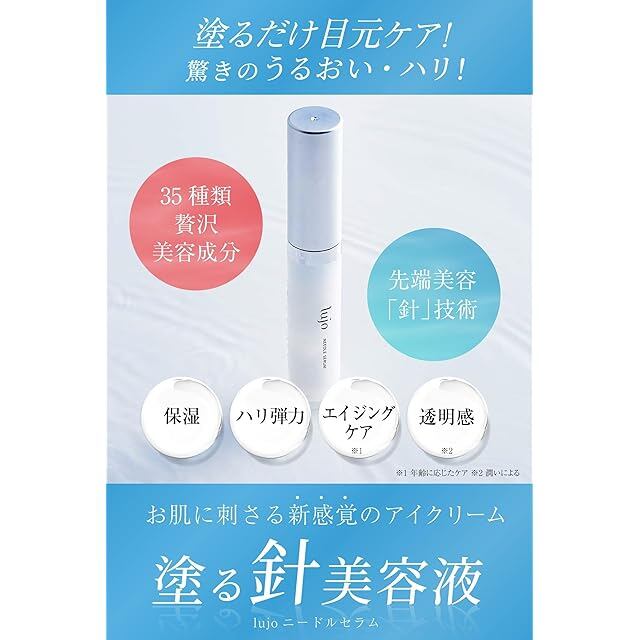 商品名:針美容液 ニードルセラム 【公式】lujo(ルジョー) アイクリーム マイクロニードル 目元ケア ヒト幹細胞 次世代エイジングケア 35種類の美容成分 (9g/1ヶ月分) ミニボトル (化粧水 + オイル美容液 各1本ずつ) 1本(9g×1)