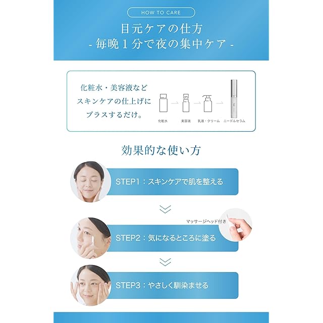 ✅【毎晩1分で夜の集中目元ケア】スキンケア後に1プッシュ。寝ている間に針が美容液を運び、夜の間にエステ級ケアを実現。