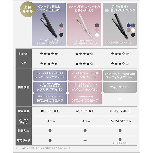 【髪にやさしくスタイリング】マイナスイオン搭載、すべりの良い2種類のコーティングプレート