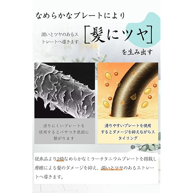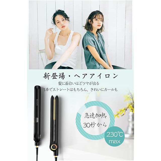 【マイナスイオン搭載・髪にやさしい】このヘアアイロンはマイナスイオンを放出し、静電気やパサつきを抑制。ヘアアイロン ストレート で髪を滑らかに整え、ストレートアイロン としてツヤと潤いをキープ。ヘアストレートナーの効果で毎日サラサラ美髪に。髪にやさしいヘアアイロンをお探しの方に最適です。