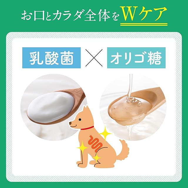:獣医師とペット栄養管理士が共同開発した、ふりかけ状の口腔ケアサプリメントです。人向けの歯磨き市場でも注目を集める自然派原料のマスティック樹脂を使用。口内の汚れを取り除くリベチン含有卵黄粉末や口臭に働きかけるカテキン類などがお口の健康を維持します*2。ふりかけ状のため、いつものごはんに振りかけるだけの簡単習慣で使いやすい口腔ケアサプリです。 *噛むことで歯垢の沈着を抑え、お口の健康を維持する<br> 天然由来の歯磨き成分:しっかりと口腔ケアをしつつ、安心してあげられるよう原材料はすべてヒューマングレード素材です。自然由来の歯磨き成分である「マスティック樹脂」を使用しています。マスティック樹脂は唾液と混ざると粘り気が出る特徴があり、よく噛むことで歯に長く付着し、口内トラブルの原因となる歯垢の沈着を防ぎます。<br> 汚れを優しく吸着:口内の汚れを取り除くリベチン含有卵黄粉末を使用。たまご由来の優しい成分で、よく噛むことでお口の汚れを素早く取り除く働きがあります。<br> ニオイを洗浄:緑茶由来のカテキン類を使用することで、よく噛むことでニオイを抑えお口の中を清潔に爽やかに保ちます。<br> お口全体をコーティング:マスティックパウダー・納豆由来の潤い成分であるポルグルタミン酸を配合。この2つの潤い成分が、よく噛むことで歯に付着してデンタルガードすることにより、長く口内環境を維持します。<br> お口とカラダ全体をWケア:お口やカラダ全体の健康をサポートする乳酸菌・オリゴ糖などのこだわりの成分も配合し、わんちゃんねこちゃんの健康なカラダと口内環境の維持をサポートします。<br> 無添加:着色料、合成香料、保存料は使用しておりません。大切な家族のお口の中に入れるものだから、素材はすべてヒューマングレードの天然由来のものを採用しております。<br> 毎日続けられる簡単習慣:1日1包いつものごはんに振りかけるだけで簡単ケアが可能です。しっかりとケアするためには、なによりも継続していただくことが大切です。簡単に与えることのできる粉末状なので、負担なく続けていただけます。<br> 無味無臭仕上げ:警戒心の強いわんちゃん、ねこちゃんも変わらない食べっぷり。<br> メーカー名:犬猫生活株式会社 生産国:日本