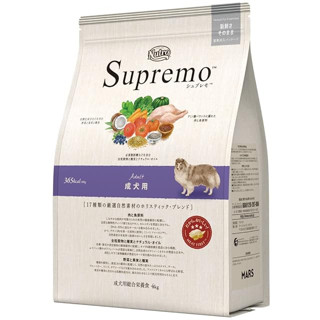 商品名:Nutro シュプレモ 全犬種用 成犬用 4kg ドライフード 総合栄養食 ドッグフード 犬 厳選自然素材 香料・着色料 無添加 ニュートロ
