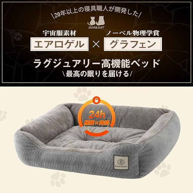 商品名:RAKU HOME 【ノーベル賞グラフェン配合】犬 猫 ベッド 冬 洗える あったか ラビットファー調 遠赤発熱【W抗菌防臭タイプ 】アルミシート エアロゲル 断熱 ペットベッド クッション 光触媒加工 抗菌防臭中わた 感動する柔らかさ 滑り止め 短毛 オールシーズン 通年用 犬用 ベッド 猫用 ベッド 暖かい 小型犬 中型犬 スクエア M 40×50×15cm グレー