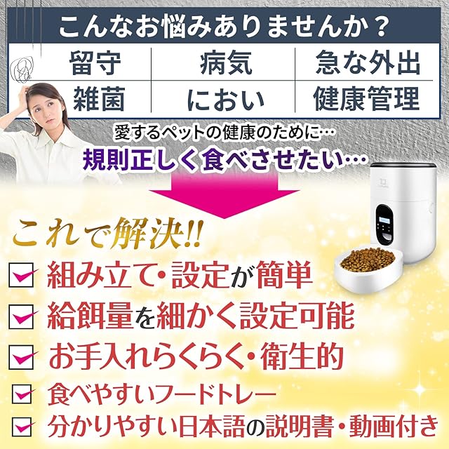 ✅【✨小動物看護士監修の使い方動画付き自動給餌器✨】小動物看護士監修の『簡単使い方動画』が付いているので、購入後すぐに使用可能。さらに、日本語の説明書兼書も付属しているので、初めて使う飼い主さんでもわかりやすい!また、RoHSやFCCなどの世界基準の安全検査をクリアしているので、愛犬愛猫にも安心してご使用いただけます。