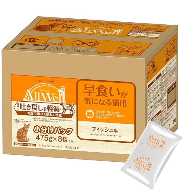 [吐き戻し軽減] All Well(オールウェル) キャットフード ドライ [早食いが気になる猫用] フィッシュ 3.8kg (475g×8袋)【国産/小分けパック/ケース品】