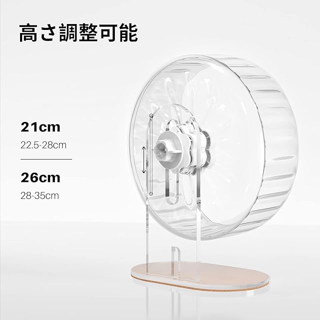 【ホイールサイズ】21cm ;走行面サイズ8cm;全体高さ:22.5-28cm;ベースサイズ:22 x 14cm;総重量0.68kg。ベースサイズ:22 x 14cm。スタンドは高さを調整でき、底部滑り止めのコルクパッド付き、ホイールがより安定します。ジャンガリアンハムスター、ロボロフスキーハムスター、キャンベルハムスター、チャイニーズハムスターなどの小型ハムスターに適しています。もし商品に不具合や使用方法が不明な場合は、遠慮なくご連絡頂きますようお願い致します。