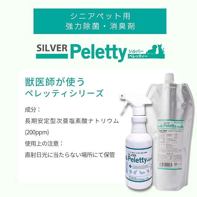 シルバーペレッティー Peletty シニア犬・シニア猫用・ペット除菌・消臭剤 (1L) 多頭飼い ブリーダー 消臭スプレー おしっこ